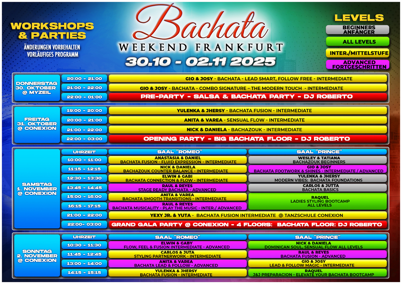 Über 20 Bachata Workshops – von Beginner bis Advanced mit internationalen & nationalen Künstlern