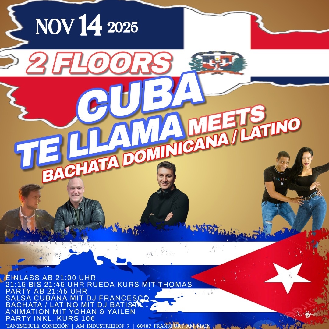 Am Freitag, den 14.11.25 findet die Cuba te llama mit zusätzlicher Tanzfläche (Bachata Dominicana und Latino - DJ Batista) mit DJ Francesco statt.