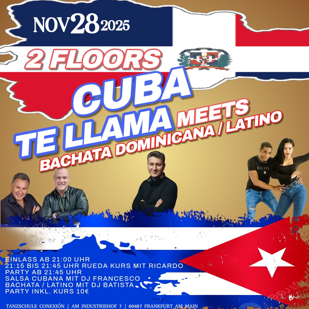 Am Freitag, den 28.11.25 findet die Cuba te llama mit zusätzlicher Tanzfläche (Bachata Dominicana und Latino - DJ Batista) mit DJ Francesco statt.