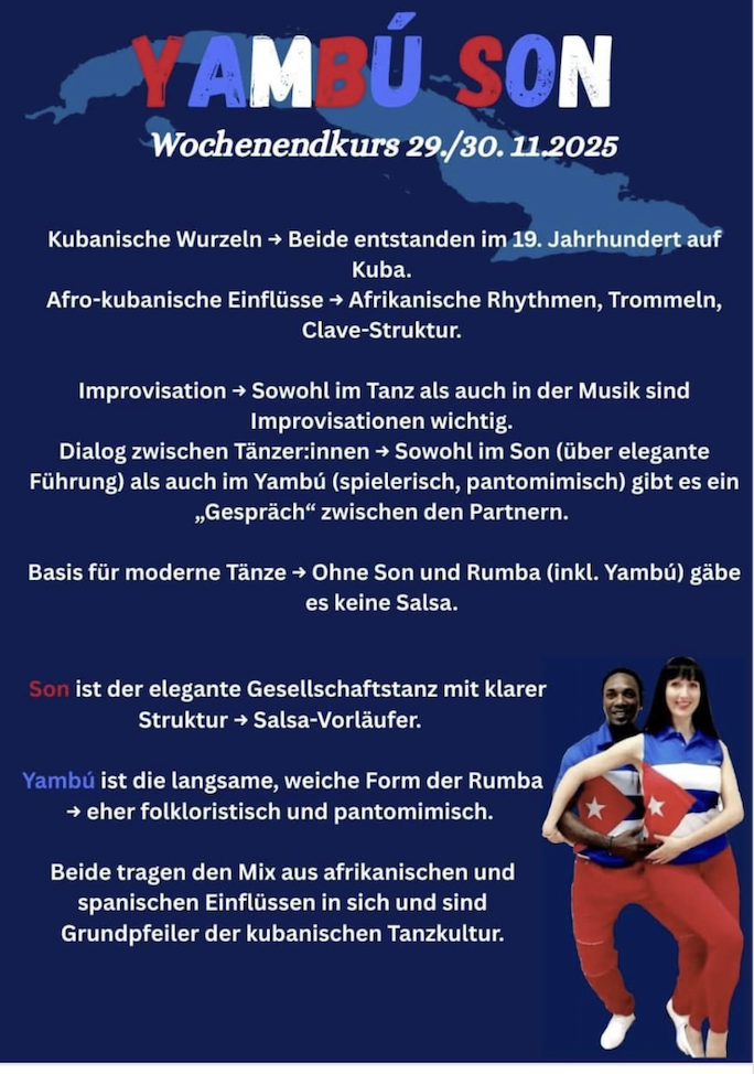 Salsa Cubana Fortgeschrittene 1-Son Yambu um 11.30 bis 14.30 Uhr