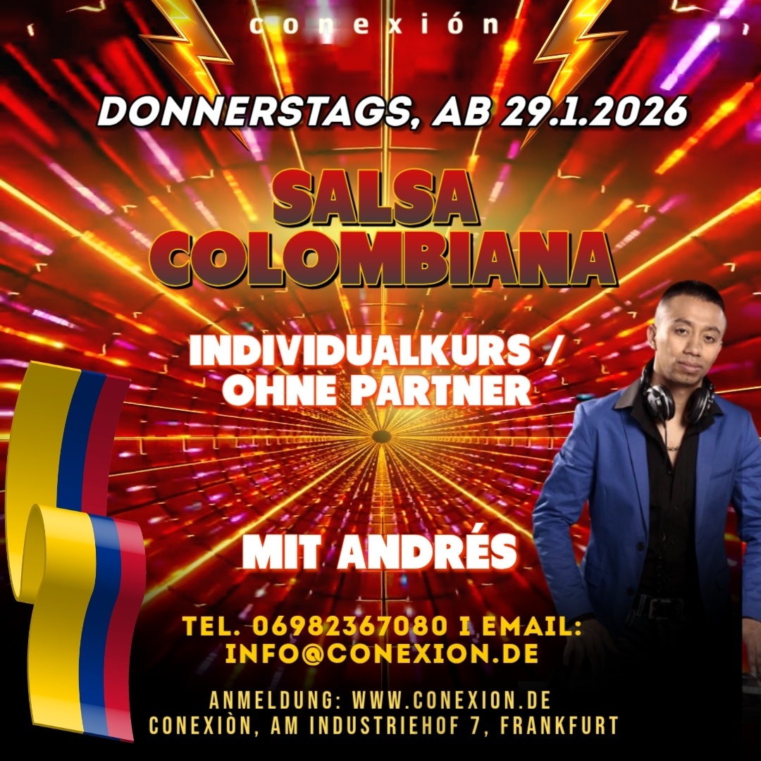 Ab Donnerstag, 29.01.26 bieten wir um 21 Uhr einen Salsa Colombiana Individualkurs mit Andres an.