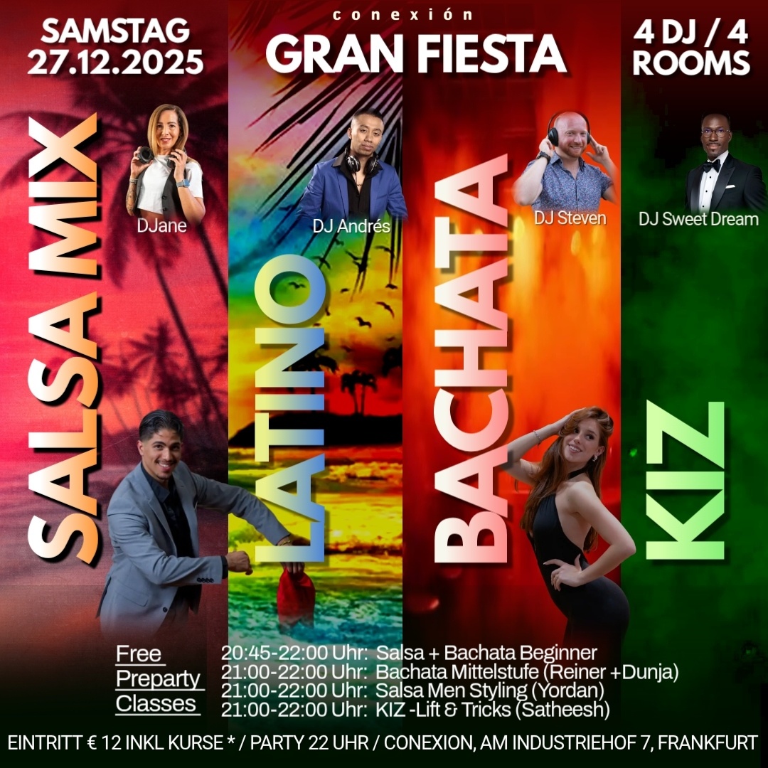 Am Freitag, den 09.01.25 findet die Cuba te llama mit zusätzlicher Tanzfläche (Bachata Dominicana und Latino - DJ Batista) mit DJ Francesco statt.