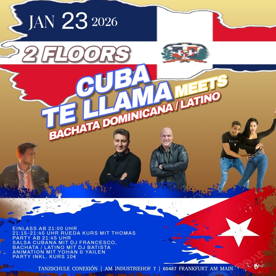 Am Freitag, den 23.01.26 findet die Cuba te llama mit zusätzlicher Bachata/Latino Tanzfläche statt.