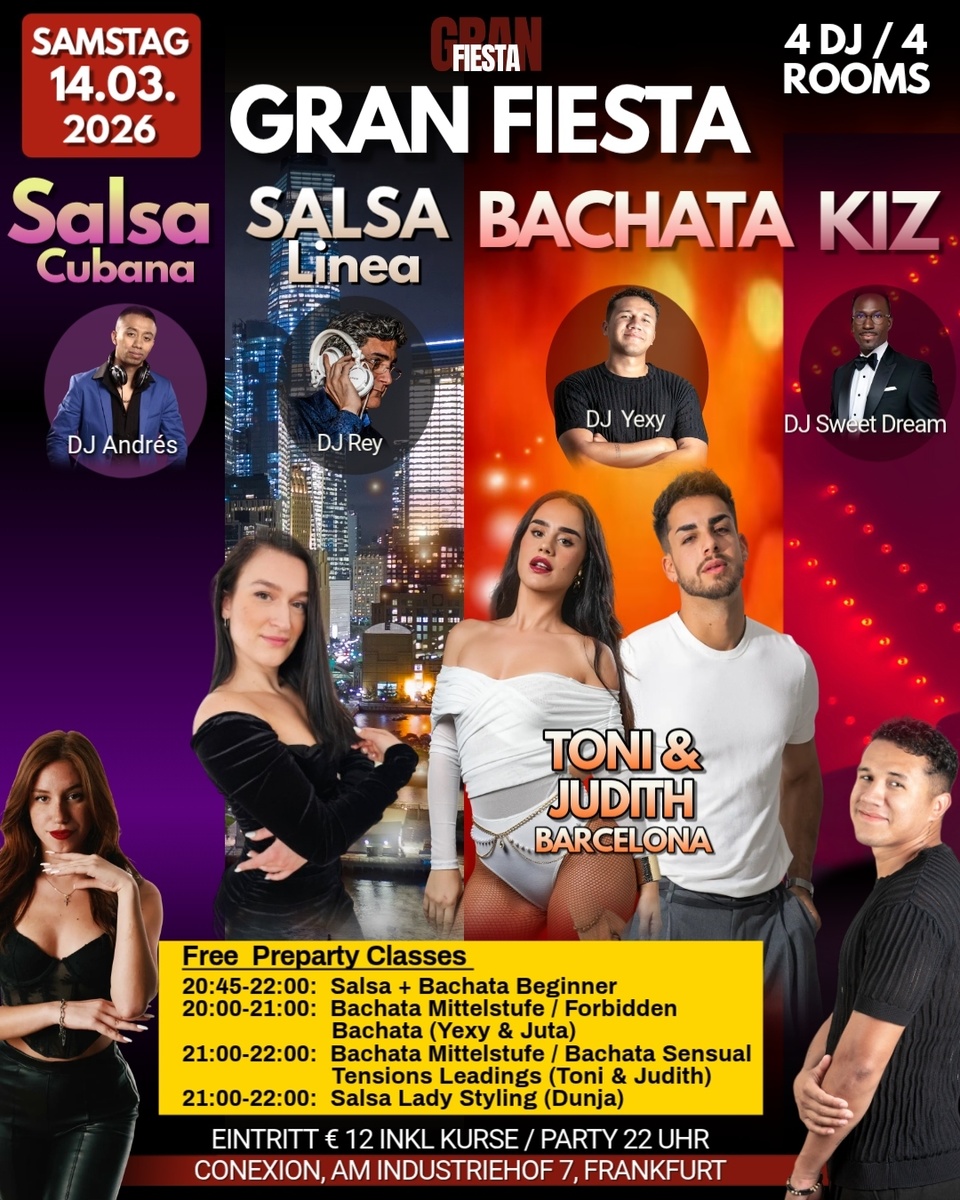 Am Freitag, den 05.12.25 findet die Cuba te llama mit zusätzlicher Tanzfläche (Bachata Dominicana und Latino - DJ Batista) mit DJ Francesco und DJ El Faraon statt.